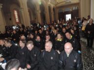 La mattinata si è aperta con la processione su piazza Sacro Cuore dei 45 aspiranti, ciascuno dei quali accompagnati da un padrino, aperta dal labaro della Misericordia di Pescara. Dopo la ripetizione delle promesse di rito, l’arcivescovo Valentinetti ha benedetto le 45 buffe, che i padrini hanno poi fatto indossare ai nuovi confratelli, i quali hanno dovuto recitare la consacrazione a Maria Santissima Madre di Misericordia: «Ai nuovi confratelli – ha ribadito dall’altare il Governatore Fiorilli – va il benvenuto di tutta la Misericordia. Oggi si compie la fine di un percorso di arricchimento interiore e si apre una nuova strada, fatta di impegno, senso del dovere, senso di responsabilità, ma anche di fratellanza, solidarietà e vicinanza gli uni agli altri, esattamente come deve accadere all’interno di una grande famiglia». La giornata della vestizione è poi proseguita nel pomeriggio con la consegna degli attestati di volontario della Misericordia a tutti coloro che nel 2016 e nel 2017 hanno seguito il corso di formazione e superato gli esami.