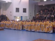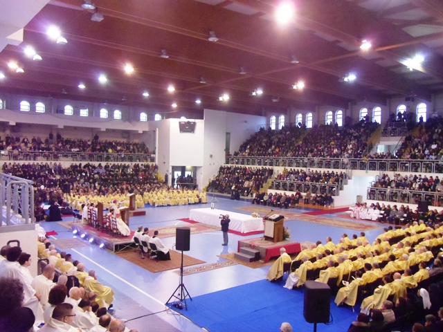 «Per quale ragione siamo chiamati a diventare ministri del nostro Dio? Per quale motivo diamo chiamati a diventare popolo santo del Signore, sacerdoti del Signore? Sicuramente per un’evangelizzazione, per annunciare che Cristo è il Signore, che Cristo è il Signore della nostra vita, della Chiesa e della storia, l’alfa e l’omega, colui che è, che era e che viene, l’Onnipotente. Questo annuncio si dipana dentro la storia della Chiesa, ormai da più di 2 mila anni, e viene affidato a noi tutti, a me vescovo, a voi carissimi presbiteri, diaconi, ministri che siete chiamati a servire nella Santa Chiesa, ma anche a te – popolo di Dio – viene chiesto di dare questo annuncio».