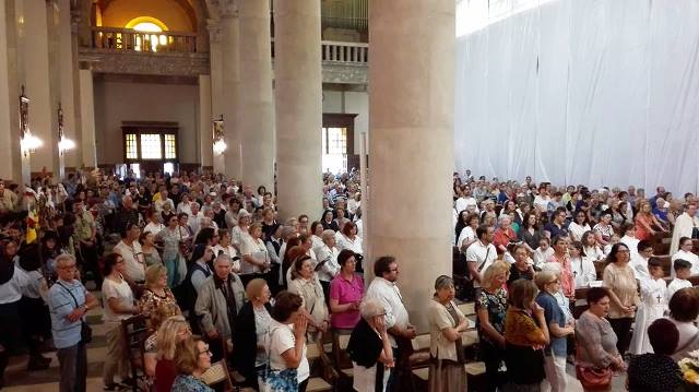 A questo punto, se è questa la contemplazione che siamo chiamati a vivere, monsignor Valentinetti si è chiesto quale dovrebbe essere la nostra risposta: «Certamente – osserva – i devoti direbbero comunione quotidiana. , perché no?! Bisognerebbe tornare a questa capacità di vivere l’eucaristia quotidianamente, ma a malapena i battezzati la stanno vivendo la domenica. Qui apriremmo una grossa parentesi… Che cosa ne abbiamo fatto della domenica, del giorno del Signore? Il giorno dello svago? Il giorno della spesa? Il giorno del viaggio? Il giorno degli incontri, forse, fuori dalla comunità cristiana? O forse la domenica non dovrebbe ritornare ad essere il giorno del Signore, il Signore dei giorni? Questa diocesi su questo tema, nel 1977, ha vissuto un congresso eucaristico dal titolo “La domenica, il Signore dei giorni”. E della domenica sicuramente dobbiamo tenere conto nel nostro appuntamento settimanale con questa presenza divina, che continua a squadernarsi nella storia, perché viene a noi, facciamo la comunione, siamo in comunione con Dio e siamo in comunione tra di noi. Continua a visitare noi peccatori, non ha nessun ritegno nei confronti dei limiti e del nostro peccato. Lui continua a dire, per mezzo delle mani del sacerdote, “Il corpo di Cristo, il corpo di Cristo, il corpo di Cristo. E allora come rispondiamo? Rispondiamo certamente con questa fedeltà, ma forse dobbiamo anche rispondere con quanto la prima lettura, la pagina del libro dell’Esodo, ci ha narrato. L’alleanza tra Israele e Jahvè si basava sicuramente su di un sacrificio di tori, di capre, agnelli e il sangue è stato asperso sul popolo, ma si basava anche su di un’altra verità “Quello che il Signore ha detto, noi lo faremo”. Possiamo dire noi di essere ostie eucaristiche dentro la storia, dentro la comunità, nel dire “Ciò che il Signore ha detto, noi lo faremo”, così come il popolo d’Israele ha vissuto per tantissimi anni, per tantissimi secoli”?».