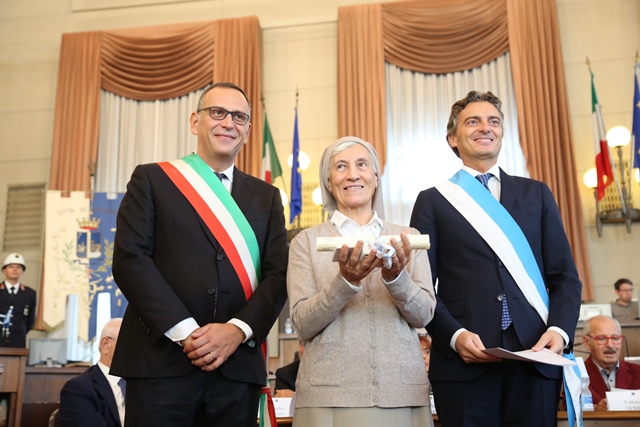 E, sempre in occasione della cerimonia di ieri, un altro Ciattè d’oro è stato insignito alla memoria di suor Maria Olga Pignatelli: suora comboniana missionaria e stoica volontaria al servizio degli ospiti della prima mensa Caritas, inizialmente ospitata all’interno del suo stesso convento di via Bardet, scomparsa nel febbraio scorso a 106 anni «perché la carità – si legge nella motivazione – è operosa, silente, gratuita, la carità è capiente, offre sorrisi aperti a chi ha poche ragioni per sorridere e un pasto sempre caldo in cui ritrovare le speranze. Tutto questo è stata suor Olga ed è per questo che la città oggi vuole dirle grazie». A ritirare il premio una consorella: «Suor Olga – commenta-, dal paradiso, gradirà questo omaggio benedicendo tutti voi».