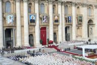 Il drappo con l'immagine di San Nunzio Sulprizio sulla loggia maggiore di San Pietro