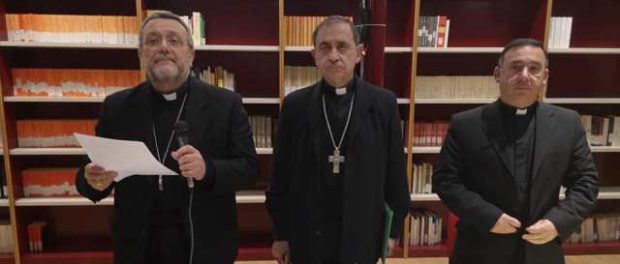 L'arcivescovo Valentinetti, monsignor Juan Ignacio Arrieta Ochoa de Chinchetru e il vicario giudiziale don Maurizio Buzzelli