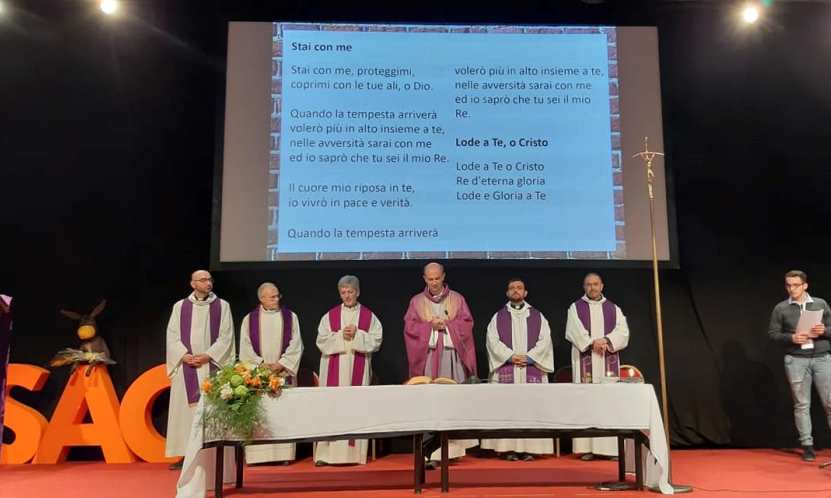 Un suggerimento alla platea dei 1.802 studenti, domenica mattina, l’ha dato anche il segretario generale della Conferenza episcopale italiana monsignor Stefano Russo presiedendo la Santa messa, concelebrata dall’assistente ecclesiastico generale dell’Azione cattolica e vescovo di Foligno monsignor Gualtiero Sigismondi: «Provate a portare impresso nel vostro cuore – afferma nell’omelia – l’“I care” di don Lorenzo Milani. Non ci vogliamo rassegnare ad un’Italia ripiegata su se stessa, vogliamo portare il nostro “I care” in ogni angolo del Paese. Tutti i vescovi italiani fanno il tifo per voi. È un modo per dire che noi non ci accontentiamo di poco. Avete scelto di andare in profondità. Per questo, non fermatevi, non fate finire qui questa esperienza. Portate nelle vostre diocesi, parrocchie, scuole e, perché no, nelle piazze dei vostri paesi e città il coraggio di riflette insieme, di discutere, magari anche di confrontarsi aspramente ma di tenere vivo il dialogo, il confronto, l’ascolto. Risvegliate in ogni angolo una vera passione per la storia che viviamo e per i luoghi che abitiamo. Voi mostrate il giovane e bello di un’Azione Cattolica che può essere capace attraverso ognuno di voi di rinnovare il mondo, la città, il paese nel quale abita. Noi vescovi italiani vogliamo sognare con voi, con coraggio, vogliamo vincere la paura. E così essere insieme lievito buono in questa storia, in questa nostra bella terra, vogliamo portare una buona notizia per le strade delle nostre città. Se lo facciamo insieme questo sogno può diventare realtà».
