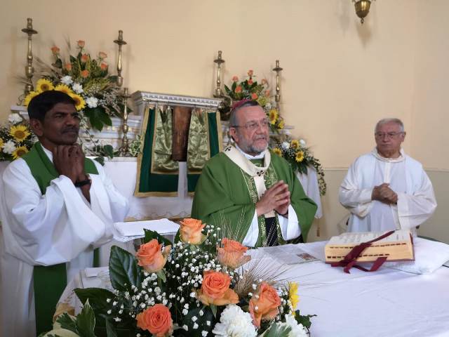 L’arcivescovo Valentinetti concelebra la messa con Padre Claudio Bottini e con don Vincent Jesu