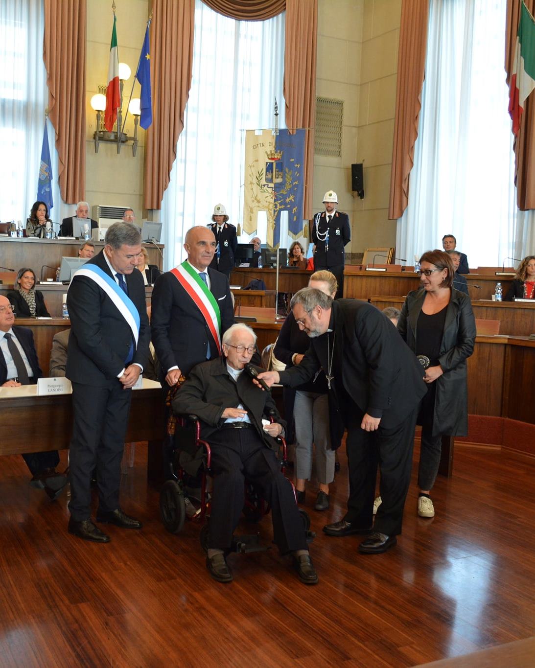 Ieri, giorno della festa di San Cetteo patrono di Pescara e della sua arcidiocesi, c’era anche don Palmerino Di Sciascio, parroco per 56 anni e fondatore della chiesa della Beata Vergine Maria del Rosario di Pescara, tra i 12 pescaresi illustri che a seguito dei loro meriti sono stati insigniti delle benemerenze civiche del Ciattè e del delfino d’oro, in una sala consiliare del Comune di Pescara gremita da autorità e cittadini.