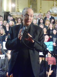 Nell’ambito dell’incontro, durante il quale l’autore ha anche interpretato alcuni brani eseguiti durante l’opera musical, è intervenuto anche il compositore Marco Frisina attraverso un videomessaggio: «Parlare dell’itinerario di Dante – riflette l’autore musicale –, così com’è descritto nella Divina commedia, è una cosa molto particolare perché Dante descrive il suo cammino spirituale, esprime il suo tormento e la sua gioia nel ritrovare la via grazie all’amore che conduce a Dio. È soprattutto l’amore con cui Dio guarda Dante a condurlo attraverso un viaggio terribile, ma pieno di speranza. I cambiamenti della vita sono spesso dolorosi e per Dante questo ha significato l’esilio, la perdita di tutto, il dolore, la sofferenza e la solitudine. Ma proprio in quel momento doloroso Dante scopre se stesso e scopre, attraverso questo viaggio interiore e anche politico, il senso della vita. E il senso della vita è l’amore ed è in questo cammino straordinario che ci invita a leggere la Commedia. Il mio augurio per tutti è di imparare da Dante a viaggiare, a viaggiare nel proprio cuore, a viaggiare verso Dio attraverso la vita, attraverso le gioie e i dolori, ma soprattutto attraverso la fede. Leggere tutto come Provvidenza, che ci conduce alla piena realizzazione della nostra esistenza. Questa realizzazione è l’amore».