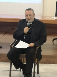Ha concluso l’incontro con Antonello Angiolillo l’arcivescovo di Pescara-Penne monsignor Tommaso Valentinetti: «Siamo in cammino, siamo pellegrini – conclude il presule – e questo pellegrinaggio ha un inizio nel momento in cui siamo stati concepiti nel grembo di nostra madre, ma questo cammino esisteva già prima. È un cammino che, se volete, è misterioso, imperscrutabile, ma esisteva. Un cammino che si realizza in una realtà di vita che non si interrompe, avendo una prosecuzione. Dante ha cercato di immaginare questa prosecuzione, era un desiderio, ma non ci è riuscito perché Dante ha descritto il suo inferno, il suo purgatorio e il suo paradiso e credo che ognuno di noi abbia il suo inferno, il suo purgatorio e il suo paradiso. E attenzione, non in sequenza, ma terribilmente mescolati con momenti della giornata in cui c’è l’inferno, il purgatorio e il paradiso oppure con mesi d’inferno, di purgatorio e di paradiso. E poi saper entrare dentro questi tempi, perché sono tempi e non luoghi. D’altra parte, nel suo immaginario, Dante deve usare per forza la realtà del luogo. Io, ad esempio, immagino quel luogo bruttissimo che lui descrive quando deve entrare nell’inferno o nell’antinferno incontrando gli ignavi “Non ti curar di loro, ma guarda e passa”. Ma pensando ai luoghi Dante ha voluto pensare ai tempi, facendo delle proiezioni e mettendo all’inferno chi ha voluto mettere all’inferno, al purgatorio chi ha voluto mettere al purgatorio e in paradiso chi ha voluto mettere in paradiso, tutti suoi compagni di viaggio, nessuno escluso. Dante era cosciente che in Ulisse o in Farinata degli Uberti c’era lui e Dante era certo che in Beatrice c’era lui, era in fondo quella dimensione d’amore che lui aveva cercato. Ed era certo che in quella visione bellissima, che è il canto trentatreesimo del paradiso dove lui si rivolge alla Vergine, non ha fatto altro che dire “Qui bisogna trovarsi dei compagni di strada, andiamoceli a cercare nei posti migliori, perché questa Compagna di strada è forse anche meglio di Beatrice”. Credo che questa sia la sintesi».