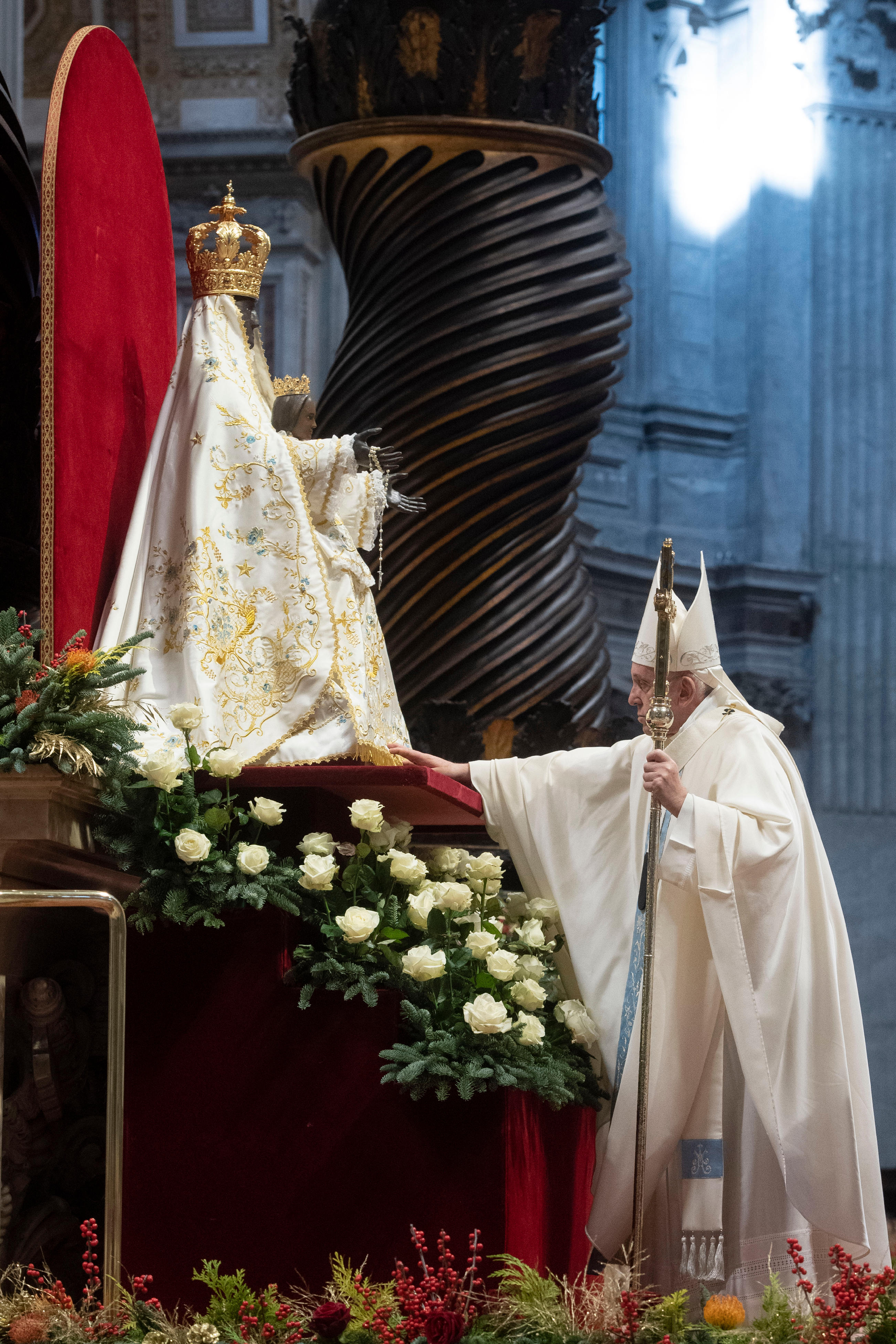 Da qui l’appello: «Va liberato dal consumismo, va rispettato e onorato – ammonisce Papa Francesco -; è la carne più nobile del mondo, ha concepito e dato alla luce l’Amore che ci ha salvati! Oggi pure la maternità viene umiliata, perché l’unica crescita che interessa è quella economica. Ci sono madri, che rischiano viaggi impervi per cercare disperatamente di dare al frutto del grembo un futuro migliore e vengono giudicate numeri in esubero da persone che hanno la pancia piena, ma di cose, e il cuore vuoto di amore».