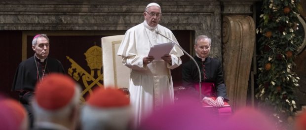 «Questa riflessione sulla crisi ci mette in guardia dal giudicare frettolosamente la Chiesa in base alle crisi causate dagli scandali di ieri e di oggi. Quante volte le nostre analisi ecclesiali sembrano racconti senza speranza. Una lettura della realtà senza speranza non si può chiamare realistica. La speranza dà alle nostre analisi ciò che tante volte i nostri sguardi miopi sono incapaci di percepire. – ha affermato Francesco – Dio continua a far crescere i semi del suo Regno in mezzo a noi. Qui nella Curia sono molti coloro che danno testimonianza con il lavoro umile, discreto, senza pettegolezzi, silenzioso, leale, professionale, onesto. Sono tanti tra voi, grazie. I problemi vanno a finire subito sui giornali, invece i segni di speranza fanno notizia solo dopo molto tempo, e non sempre».