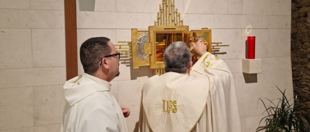 L'arcivescovo Valentinetti colloca il Santissimo sacramento nel tabernacolo