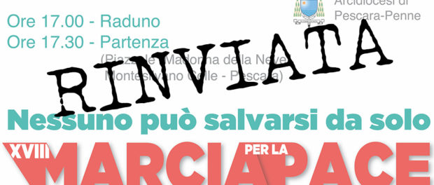 A causa dell’allerta meteo prevista per la giornata di domani, in accordo con il Comune di Montesilvano, si comunica che, in via precauzionale, la XVIII edizione della Marcia per la Pace è rinviata a sabato 4 febbraio 2023.