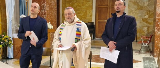 Il sovrintendente della chiesa metodista di Pescara, Alan Di Liberatore, l'arcivescovo monsignor Tommaso Valentinetti e il sacerdote ortodosso Marin Luculescu