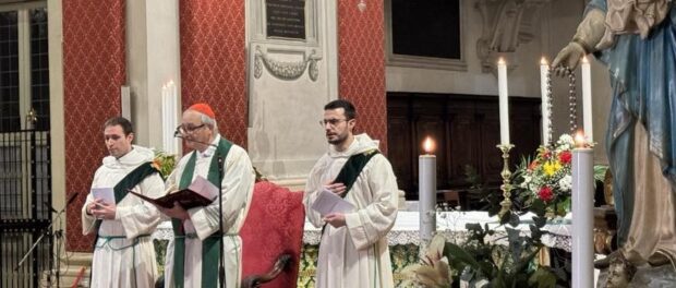 È stato un Santo Rosario intenso e partecipato quello che ieri sera il cardinale arcivescovo di Bologna e presidente della Conferenza episcopale italiana (Cei) Matteo Zuppi ha presieduto nella chiesa bolognese di San Domenico, trasmesso in diretta da Tv2000 e Play2000, per riunire l’Italia intera in preghiera per la salute di Papa Francesco, che ha trascorso il decimo giorno di degenza al Policlinico “Gemelli” di Roma dov’è ricoverato per una polmonite bilaterale con lieve insufficienza renale.