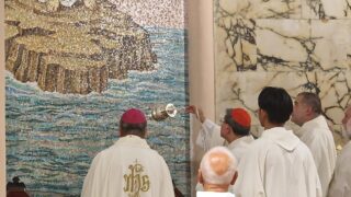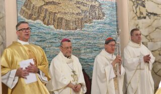 Dopo l’omelia, il cardinale filippino ha benedetto il mosaico del Sacro Cuore di Gesù – recentemente restaurato – che sovrasta l’altare del Santuario della Divina Misericordia. E il rettore di quest’ultimo, a fine celebrazione eucaristica, ha voluto ringraziare personalmente il cardinale Luis Antonio Tagle per la sua presenza e tutti coloro che hanno collaborato per la realizzazione dell’evento: «Innanzitutto – conclude don Lorenzo Ruggiero – vorrei ringraziare l’intera comunità del Santuario della Divina Misericordia. Come diceva il nostro arcivescovo, è molto bello poter celebrare degnamente la festa, anzi la solennità (che significa “una volta l’anno”) del Sacratissimo Cuore di Gesù. È una festa meravigliosa, che ci parla dell’amore divino e dell’amore umano del Padre. È molto bello che la celebriamo in tanti, perché dice dell’amore e della devozione di questa città al Sacro Cuore di Gesù. Ringrazio anche tutti coloro che, in queste settimane, anzi mesi, hanno lavorato alacremente, silenziosamente, umilmente, perché questa celebrazione potesse essere tale, una celebrazione di festa e di fratellanza. Quindi io vi ringrazio di cuore tutti, perché è davvero un segno che il Signore ci fa camminare insieme. Ringrazio il nostro Arcivescovo, il nostro Vicario generale che presenziano questa celebrazione, tutti i confratelli che sono qui presenti. Ringrazio le autorità (rappresentate dal sindaco e dal vice sindaco di Pescara, rispettivamente Carlo Masci e Maria Rita Carota, ndr), che ci hanno anche aiutato in questo tempo a preparare la festa al meglio. E infine, non per ultimo, cioè per ultimo ma non per ultimo, ringrazio di cuore Sua Eminenza il cardinale Luis Antonio, “Cito” per gli amici, e quindi per noi da oggi sarà il cardinale “Cito” Tagle. Grazie di cuore a tutti».