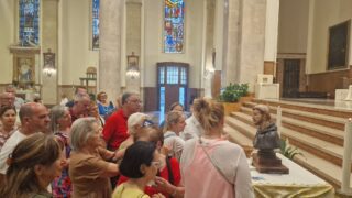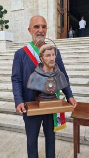 È stato dapprima il sindaco Carlo Masci ad accoglierle nel piazzale antistante il Municipio, la casa dei pescaresi, attraverso una breve cerimonia guidata dal direttore dell’Ufficio liturgico diocesano don Emilio Lonzi, alla presenza del vicario generale dell’Arcidiocesi di Pescara-Penne don Amadeo José Rossi, dell’abate della Cattedrale di San Cetteo monsignor Francesco Santuccione e di una rappresentanza dei sacerdoti della foranìa di Pescara centro: «Sono le reliquie principali, fondamentali, che hanno visitato un po’ tutti i comuni e le diocesi d’Italia di anno in anno – ricorda don Emilio -. E così sono giunte anche a noi, in questa nostra città di Pescara e in alcune città della nostra diocesi. Ci prepariamo a questo grande evento del 3 e del 4 ottobre, quando tutti i comuni della regione Abruzzo porteranno l’olio, lo verseranno simbolicamente sia a Santa Maria degli Angeli il 3 e poi al Sacro Convento, nella basilica superiore, il 4 ottobre (alimentando la lampada votiva sulla tomba del patrono d’Italia). Questo è un tempo di preparazione, di preghiera. Accogliendo le reliquie, accogliamo la spiritualità francescana nel nostro cuore, che tocca la vita della maggior parte dei cristiani».
