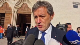 Quindi a prendere la parola è stato il presidente della Regione Abruzzo, Marco Marsilio: «Assisi, oggi, può e deve essere non soltanto un luogo di memoria – afferma Marsilio -, ma anche un laboratorio di speranza, un faro che illumina la via da percorrere insieme come popoli e come comunità. Desidero che le parole e l’esempio di San Francesco — e con lui le radici storiche e spirituali del nostro Abruzzo — possano essere di ispirazione non solo per le nostre comunità, ma per l’intera nazione. Che questa giornata, consacrata dal ricordo del Cantico delle Creature a ottocento anni dalla sua nascita, diventi stimolo e spinta universale verso la pace, in un tempo fragile e incerto, in cui i venti di guerra e di divisione continuano a soffiare in ogni parte del mondo. Che da Assisi e dall’Abruzzo si levi oggi un messaggio forte, luminoso e coraggioso: quello di credere che la pace è possibile, di lavorare insieme per costruirla, e di difenderla come il più prezioso dei beni comuni».