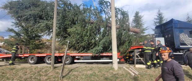 L'albero di Natale, donato del Comune di L'Aquila, in viaggio verso Assisi