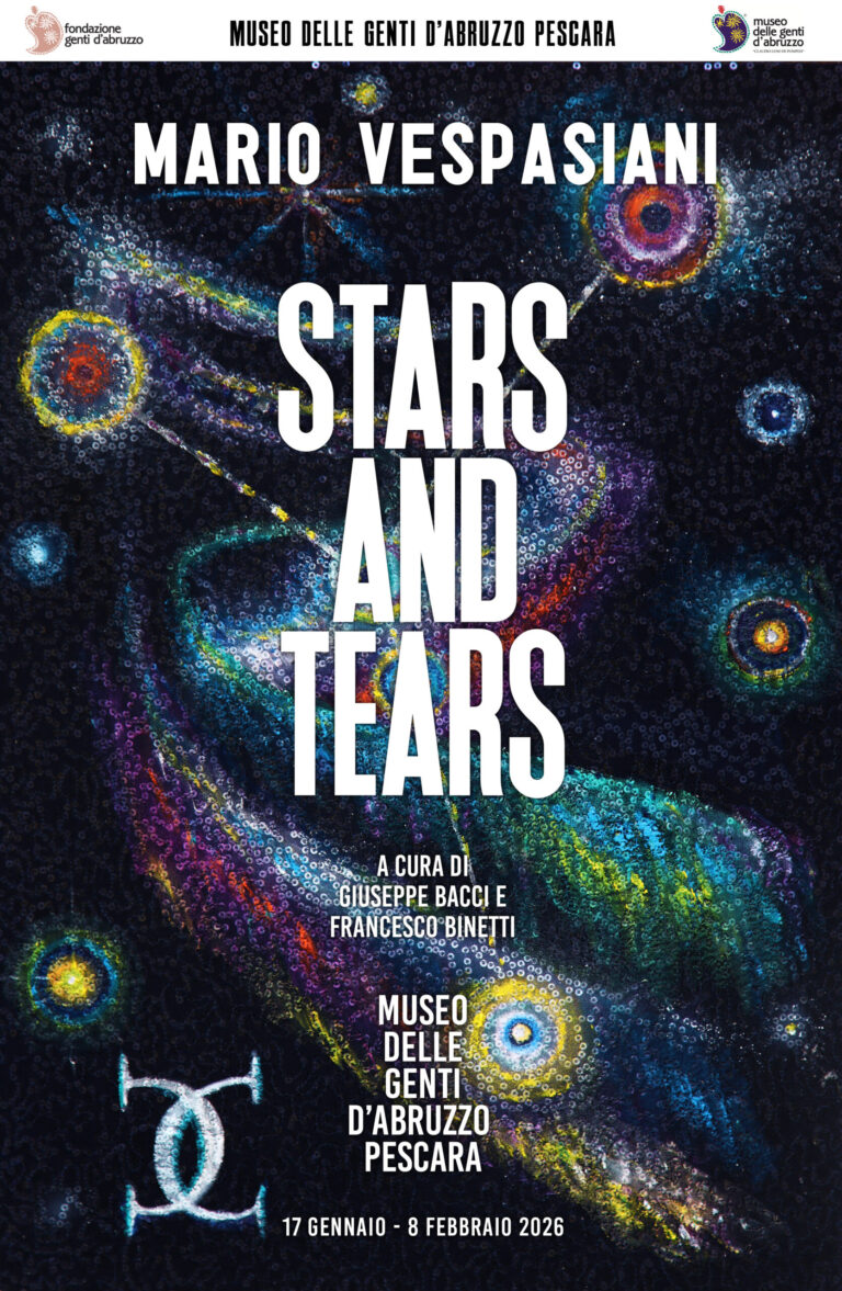 Al Museo delle Genti d’Abruzzo di Pescara sarà possibile ammirare fino a domenica 8 febbraio 2026 la mostra delle opere di Mario Vespasioni dal titolo “Stars and Tears”, inaugurata lo scorso sabato 17 gennaio, a cura di Giuseppe Bacci e Francesco Binetti. Sarà così possibile visionare le opere dell’artista visivo e intellettuale classe 1978, che ha già esposto le sue opere in gallerie, musei e luoghi sacri in tutta Italia, realizzate negli ultimi tre mesi a seguito dell’improvvisa scomparsa del padre. I dipinti di Vespasiani sono quindi il risultato di questo avvenimento. Non raccontano una fine, ma più che altro il passaggio, non insistono sull’assenza, bensì su una continuità che si manifesta in potenti forme simboliche e visionarie.